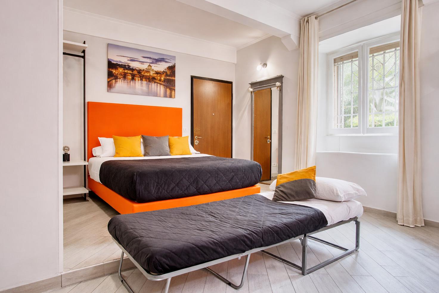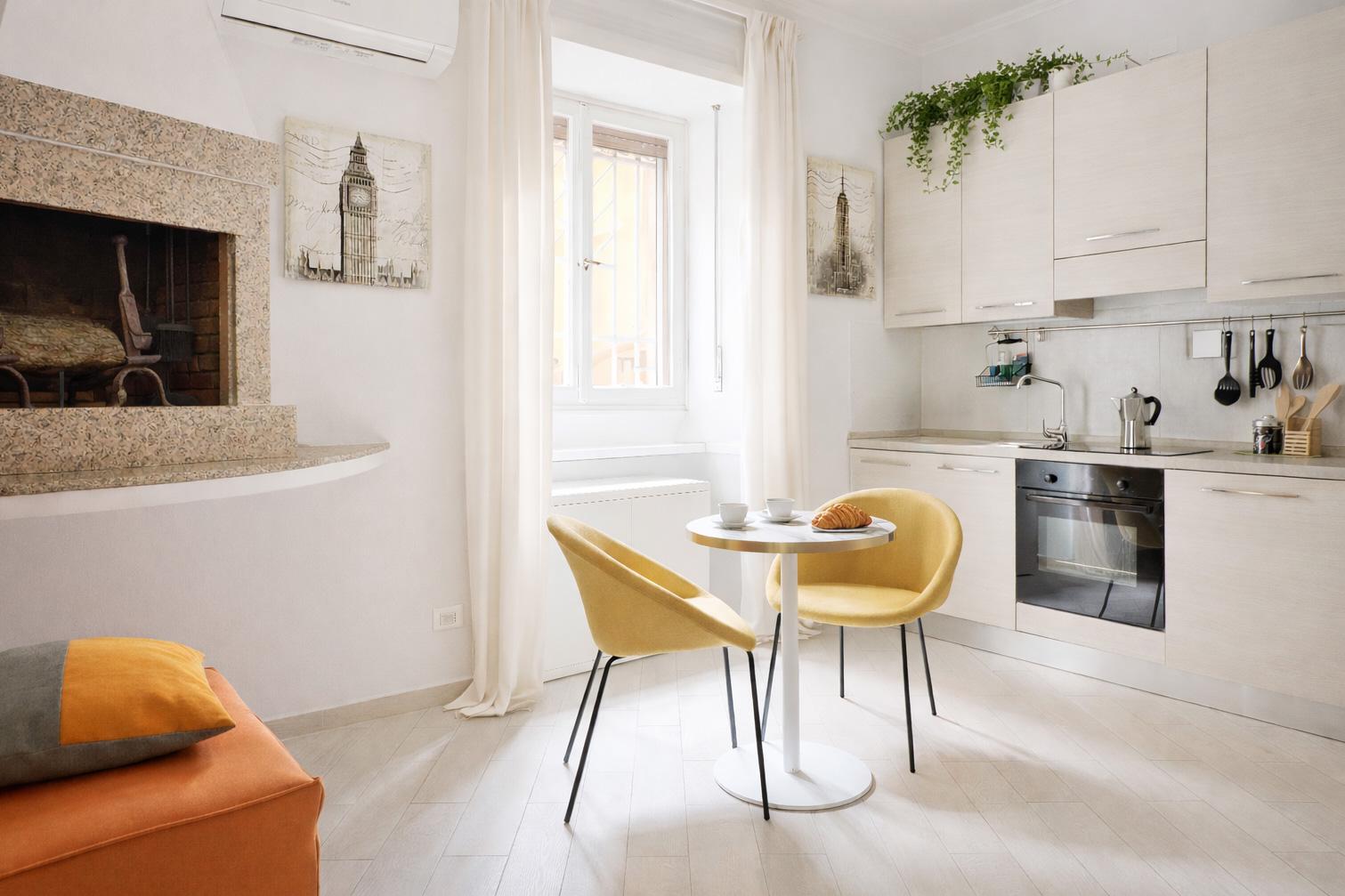 Nonostante la vicinanza alla vita serale del quartiere, l’appartamento si affaccia su un vicolo tranquillo che garantisce privacy e silenzio, permettendo di riposare in totale relax dopo una giornata alla scoperta della città. La zona è ricca di ristoranti, bar tipici, locali storici e mercati, offrendo un’esperienza autentica della vera romanità.