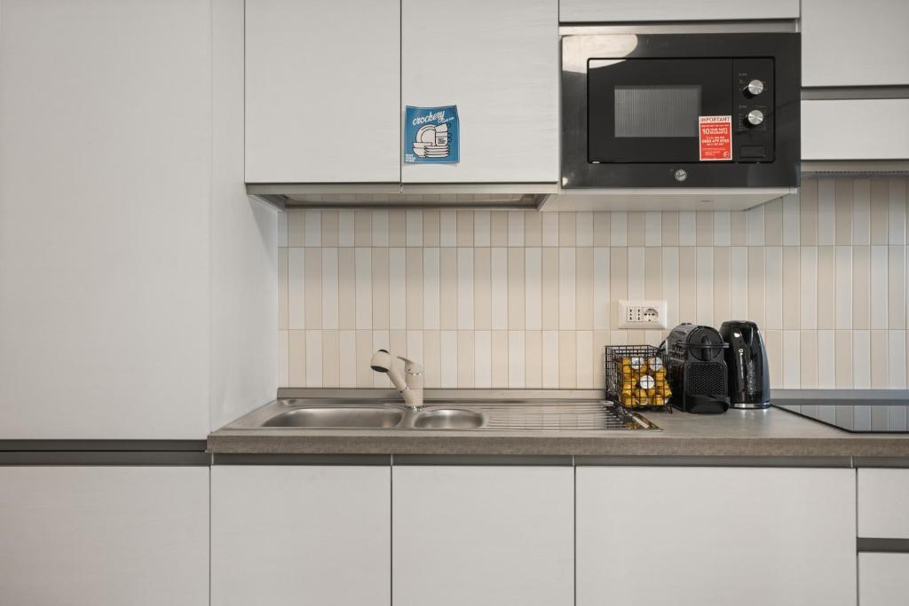 La zona giorno è organizzata per garantire relax e praticità, mentre la cucina dispone di piano a induzione Whirlpool, forno a microonde Hoover, bollitore Russell Hobbs e macchina del caffè Nespresso con capsule disponibili. Presenti anche TV Hisense, ferro da stiro Beper, phon Remington e tutte le dotazioni essenziali.