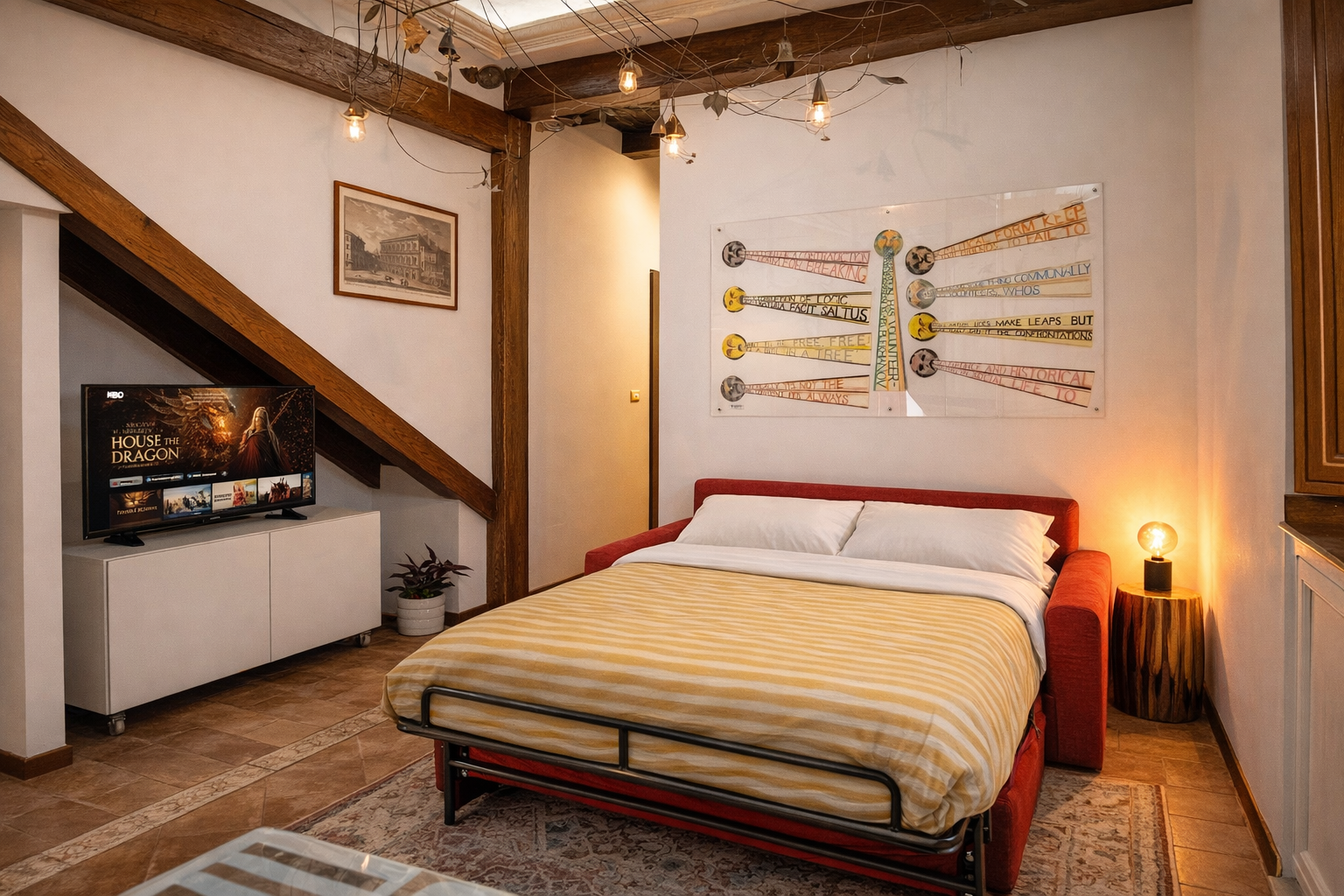 Nel cuore più autentico di Roma, a pochi passi da Campo de’ Fiori, il nostro appartamento si trova all’interno di una suggestiva torre medievale risalente al XII secolo, storicamente legata alla famiglia degli Orsini.