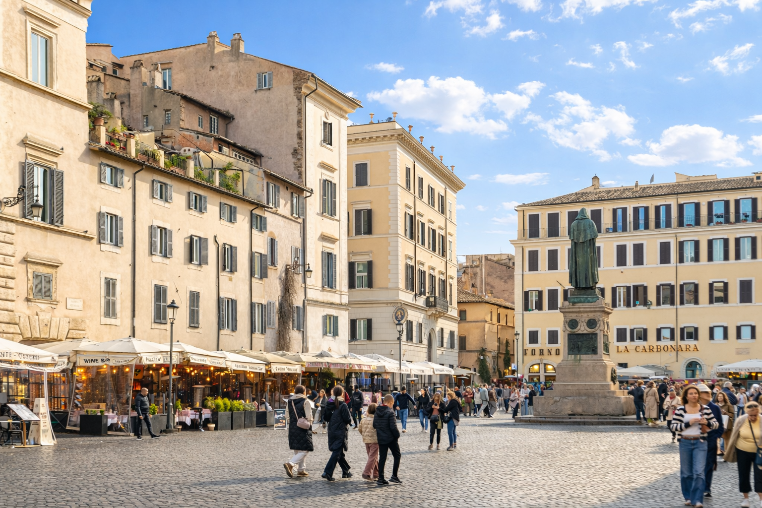 La posizione è tra le più centrali e caratteristiche della città: le principali attrazioni sono raggiungibili a piedi in pochi minuti, così come alcuni dei ristoranti storici, bistrot e locali più iconici di Roma. Una zona viva ma allo stesso tempo raccolta, perfetta per vivere la città con autenticità.